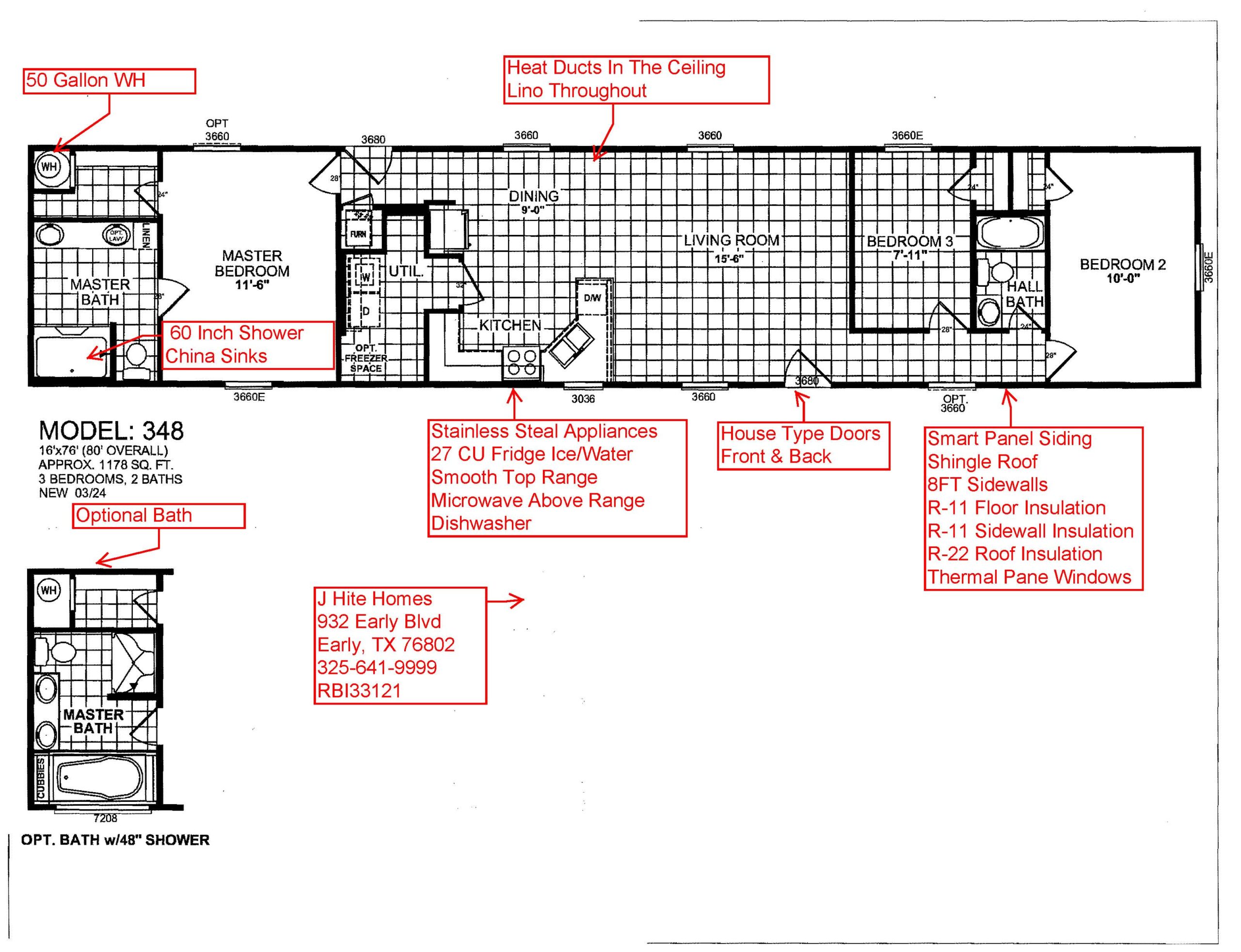 This home features 8ft Flat Ceiling with Heat Ducts. Smart Panel Siding, Metal Roof and Insulated Windows. Large Walk in Pantry, Lino Throughout and Beams in the Living Room. 42″ Cabinets, China Sinks and Fiberglass Tubs and Showers. Many more options are included.
